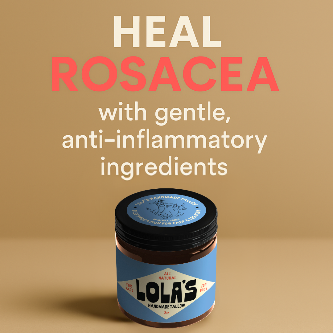 - Heals dry, irritated patches with tallow, aloe, and honey.